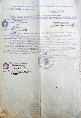 Dopis arh. zamjenika N. Markovića u vezi odobrenja za zaključenje mješovitog braka, 29.08.1947. Cetinje, (AOB-KI-MDB-44)